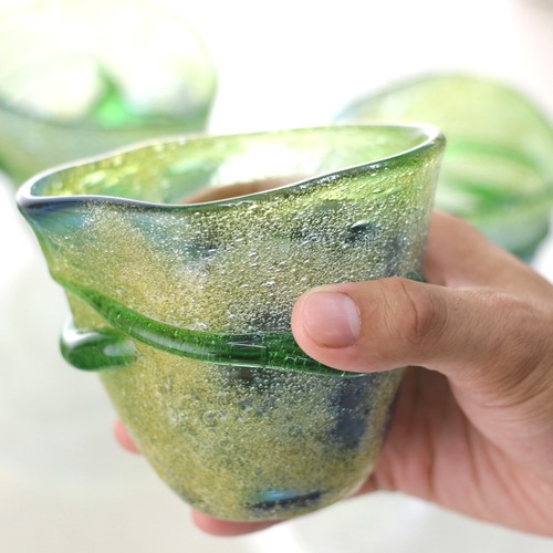 琉球ガラス 沖縄 お土産 ロック ビールグラス ビアグラス 茶泡変形宙吹きグラス